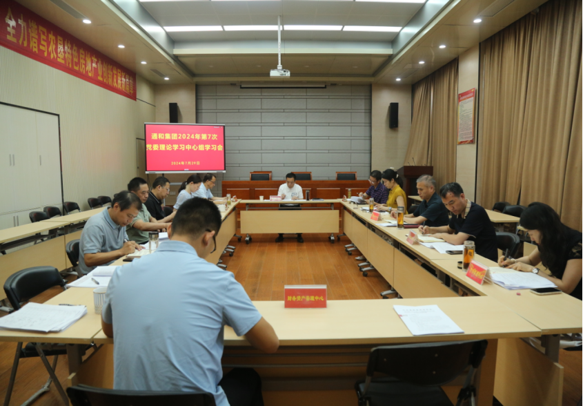 7月29日,通和集团召开2024年第7次党委理论学习中心组学习会议,集中学习习近平总书记在中共中央政治局第十五次集体学习时的重要讲话精神、习近平总书记在中央全面深化改革委员会第五次会议上的重要讲话精神,重点学习了《中国共产党第二十届中央委员会第三次全体会议公报》《中共中央关于进一步全面深化改革 推进中国式现代化的决定》,并结合通和集团实际,开展了交流研讨。通和集团领导班子成员、各部门负责人参加会议,通和集团党委书记、董事长史敦文主持会议。