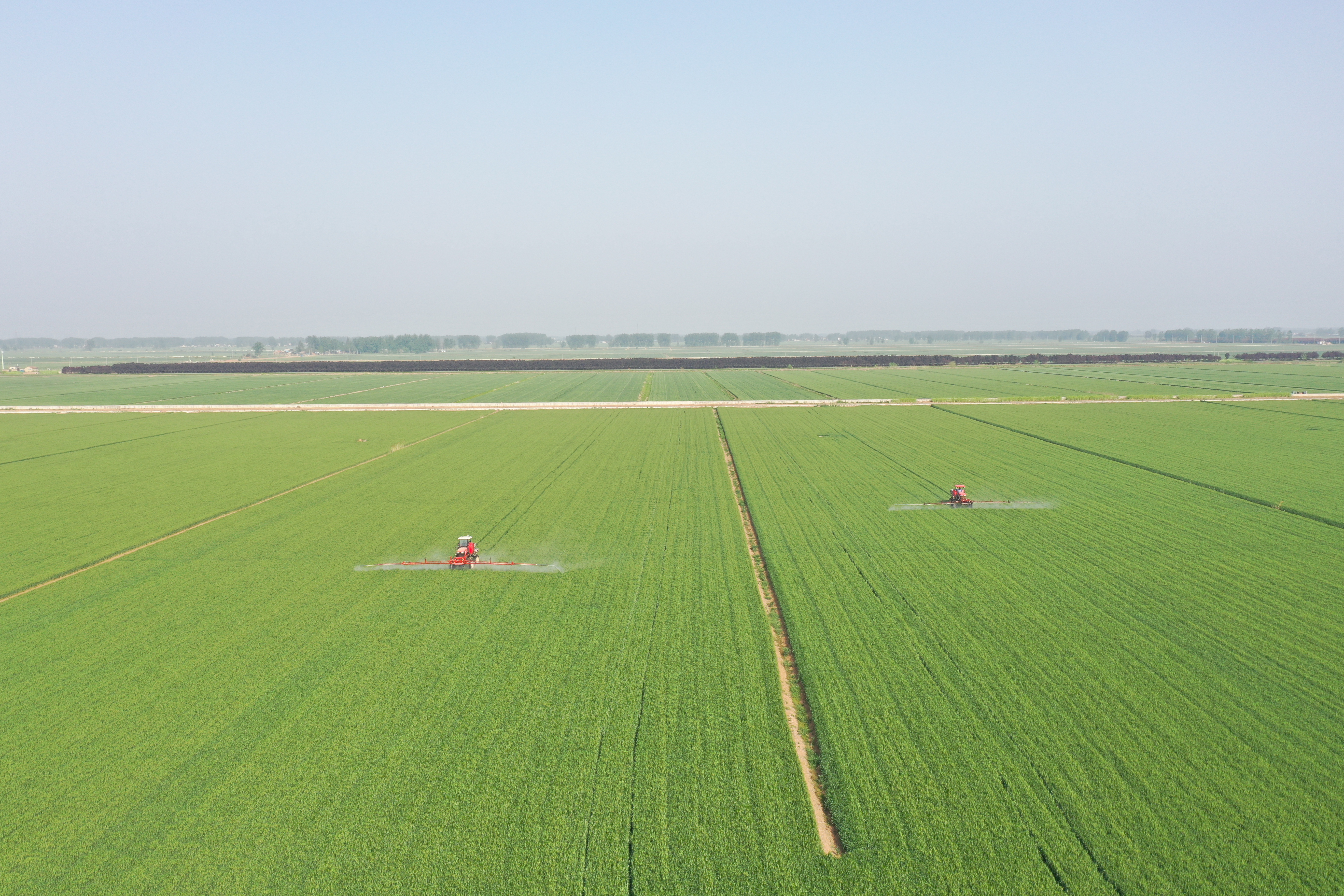 近日,在安徽农垦潘村湖农场一分场3号地,大型植保机正在开展小麦“一喷三防”作业。眼下农场3.3万亩优质专用小麦陆续进入抽穗扬花期,正是开展以防干热风、防病虫害、防早衰为主要内容的“一喷三防”最佳时机。连日来,农场坚持分类施策、科学用药原则,组织人力和机械不误农时开展统防统治作业。