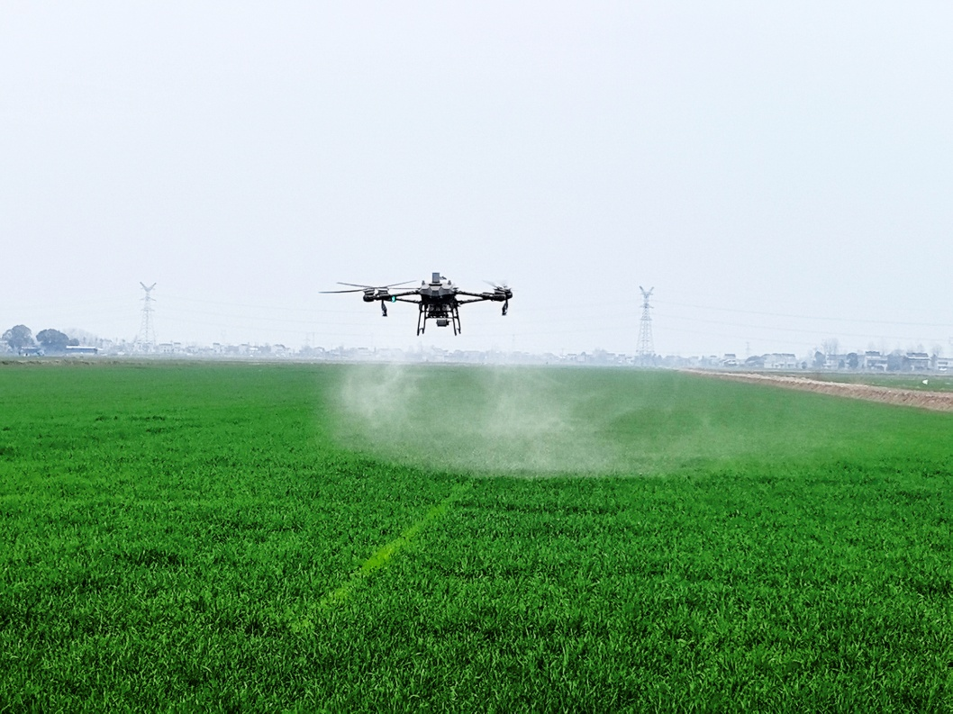 皖河农场开展小麦“一喷三防”作业。(徐丽燕 摄)