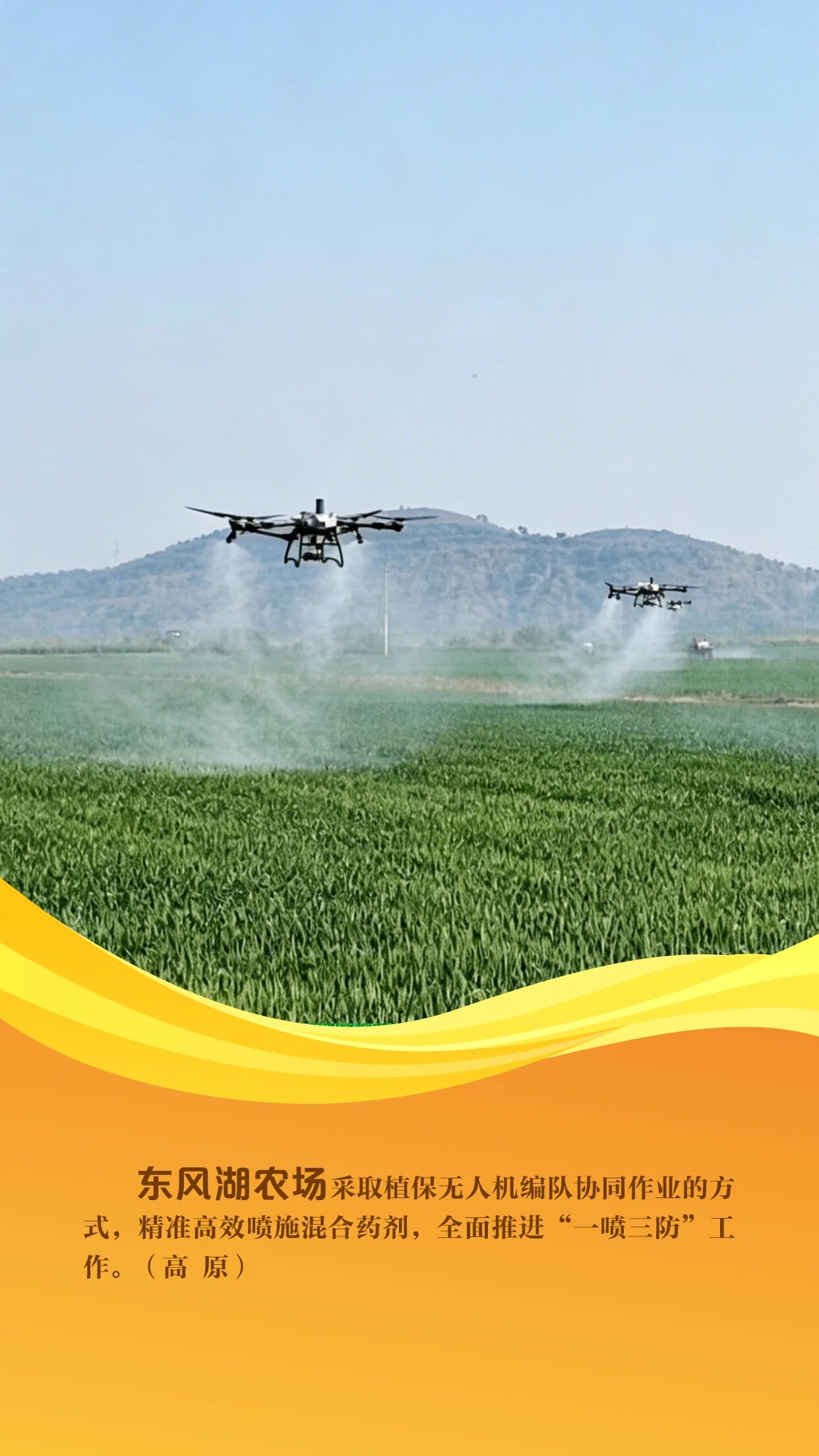 当前,沿淮地区小麦正处于抽穗扬花期,是夏粮产量形成的关键期,也是赤霉病防控的“窗口期”。农垦集团紧扣农时,组织各农场聚焦赤霉病精准防控,全面开展小麦“一喷三防”统防统治工作。各农场利用自走式喷竿喷雾机、无人机等高效植保机械,坚持因地因时制宜、分类管理,开展精准作业、科学施药,全方位筑牢夏粮丰收根基。