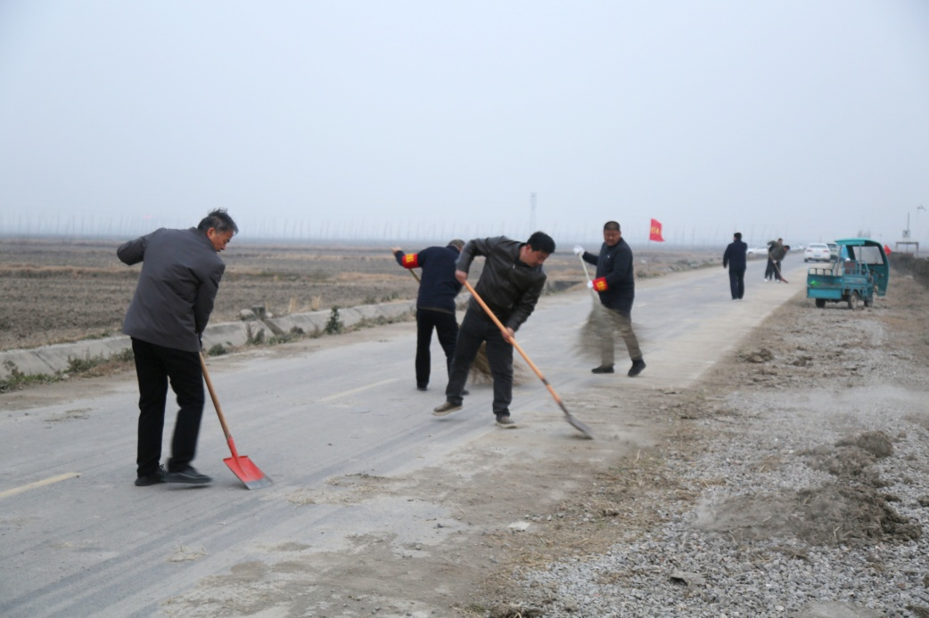 秋收秋种后,大型农机作业残留的厚重积土堆积在中心路两侧,既影响通行,也破坏环境美观。整治现场,领导干部手持铁锨铲除顽固土块树立标杆;党员先锋队分片作战,清扫散落尘土、清理路面积泥,不惧阵风卷尘;青年团员主动认领重活累活,形成“领导带头、党员冲锋、青年跟上”的火热氛围。