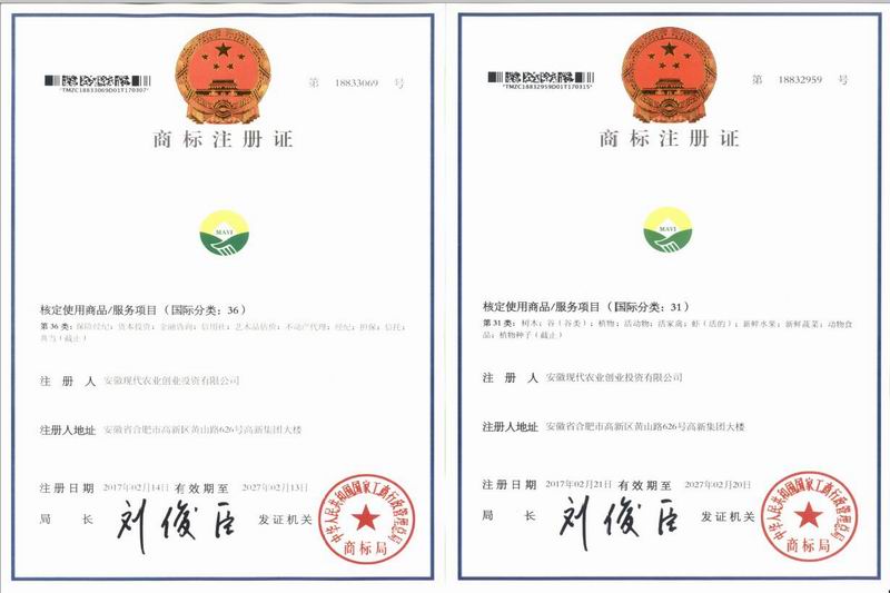 获批注册的农业商标LOGO中,绿色代表山川、河流、农田、农业和大自然,与安徽农垦及国家种业基金的LOGO一脉相承,两片绿色嫩叶寓意种子破土出苗,也寓意创投公司和种业企业合作成功握手;投资金融商标以金黄色设计成半个铜币,寓意投资成、收益多和阳光普照大地。两款商标整体设计“天圆地方”,寓意创投公司在股东支持下茁壮成长,助推安徽种业企业和现代农企做优做强。(甘善俊)
