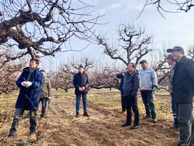 果树修剪是冬管关键环节,不仅能促进果树健康生长,更能提升果实品质,当前正是修剪的最佳时期。在果园里,高级农艺师陈加红正指导果农修剪梨树,他形象地说:“科学修剪枝条,就像给果树实施‘优选优培’手术,保留最优质的枝条才能结出高品质的水果。”为确保修剪质量,砀山果园场提前组织技术人员深入果园调查树势、制定针对性修剪方案,通过举办专题培训、现场实操指导等方式,全方位助力果农规范作业。